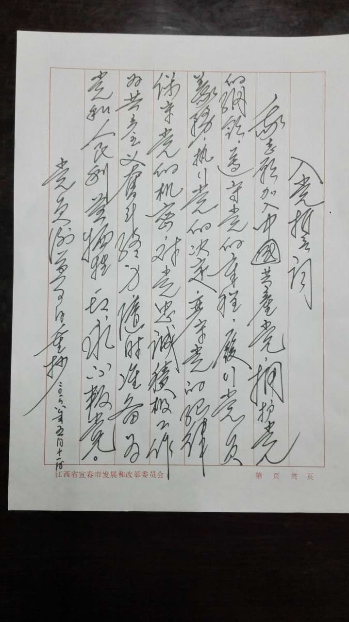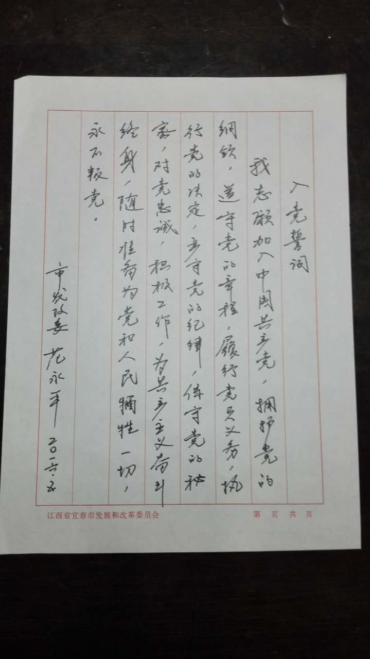 我委退休老党员、原主任谢梦日手抄入党誓词